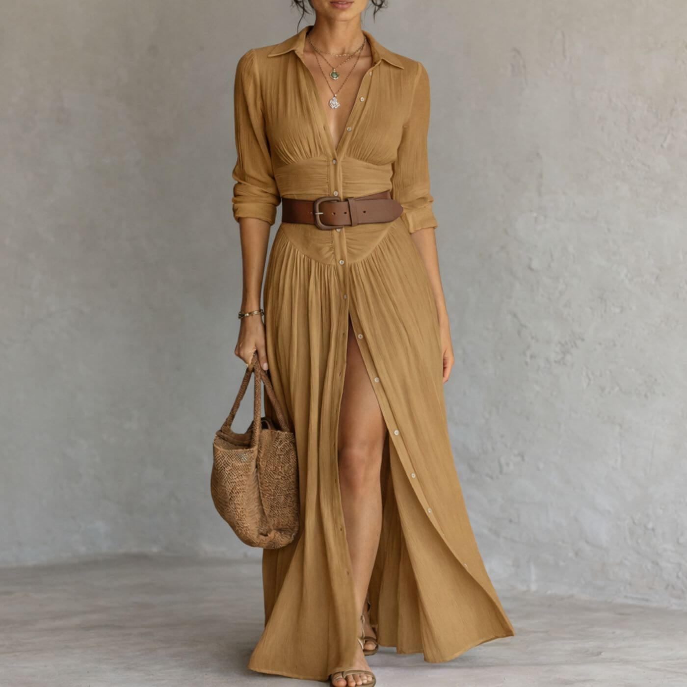 You know that feeling when a dress looks beautiful but ends up feeling tight or restrictive after a few hours. This one gives you room to move, breathe, and relax while still looking polished. It flows with your body instead of working against it, so you can go through your day without adjusting or overthinking.